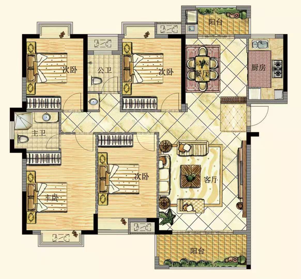 • 户型名称:4室2厅2卫1厨